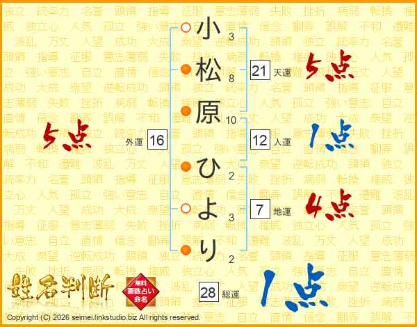 小松原ひよりさんの外運は16画の5点!