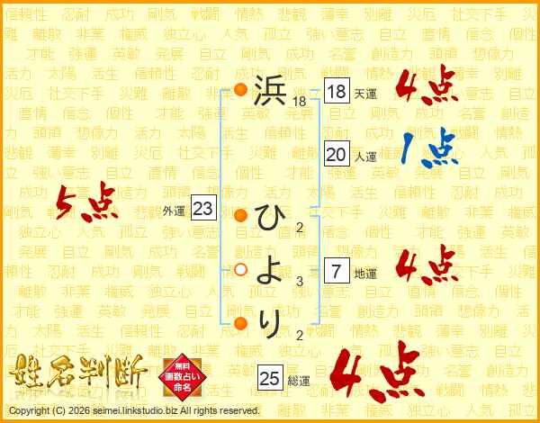 浜ひよりさんの総運は25画の4点!