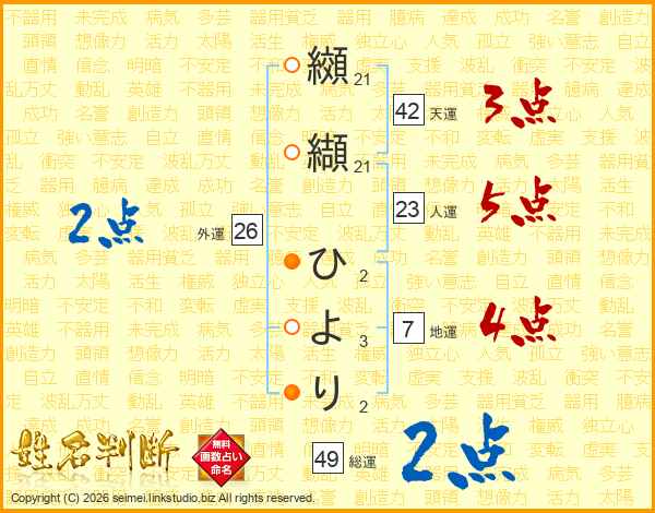 纐纈ひよりさんの外運は26画の2点!