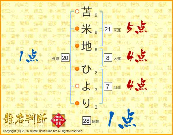 苫米地ひよりさんの総運は28画の1点!