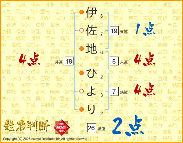 伊佐地ひよりさんの総運は26画の2点!