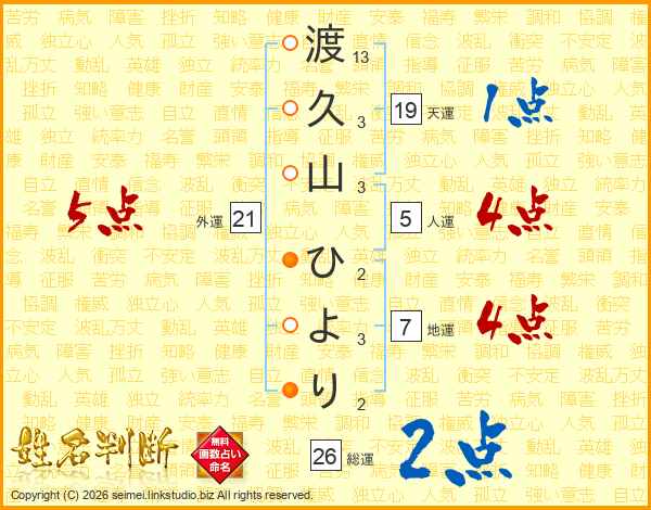 渡久山ひよりさんの総運は26画の2点!