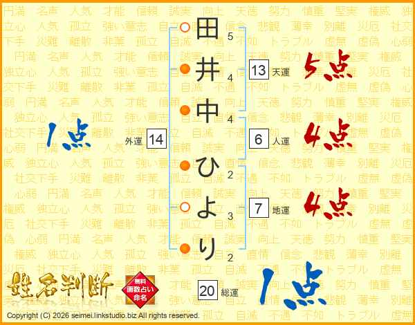 田井中ひよりさんの外運は14画の1点!