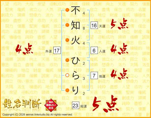 不(4画)知(8画)火(4画) ひ(2画)ら(3画)り(2画)