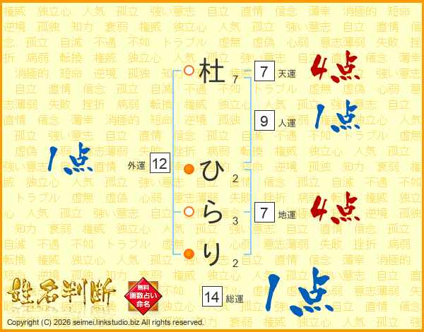 杜ひらりさんの天運は7画の4点!