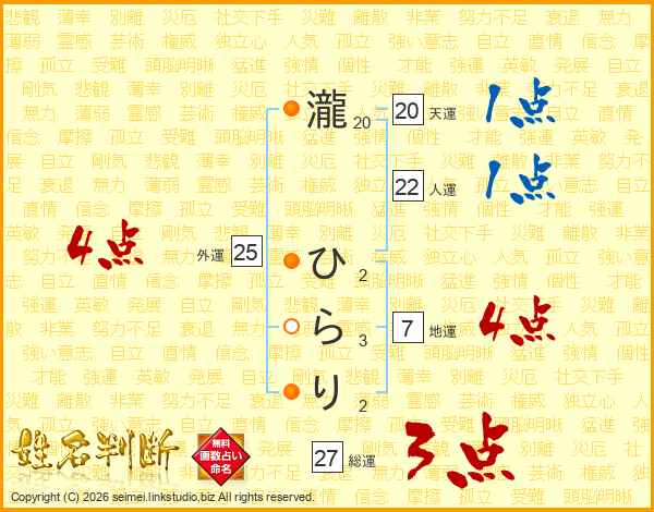 瀧(20画) ひ(2画)ら(3画)り(2画)