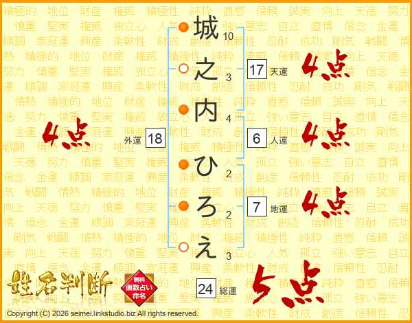 城之内ひろえさんの外運は18画の4点!