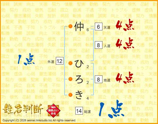 仲ひろきさんの総運は14画の1点!