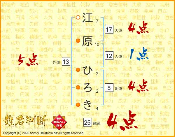 江原ひろきさんの総運は25画の4点!