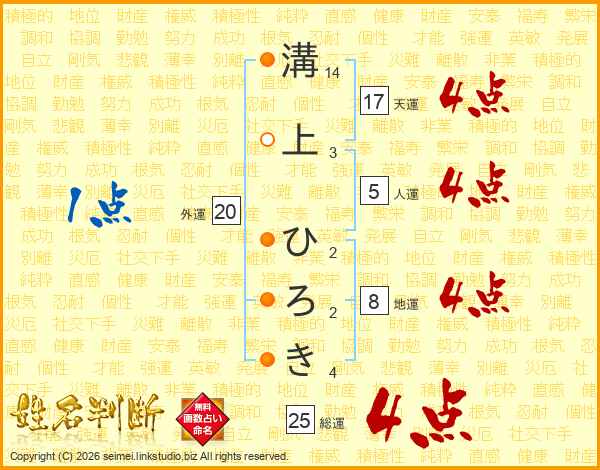 溝上ひろきさんの総運は25画の4点!