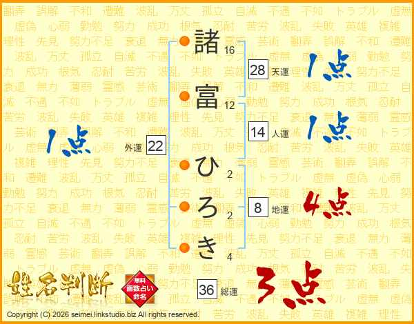 諸(16画)富(12画) ひ(2画)ろ(2画)き(4画)