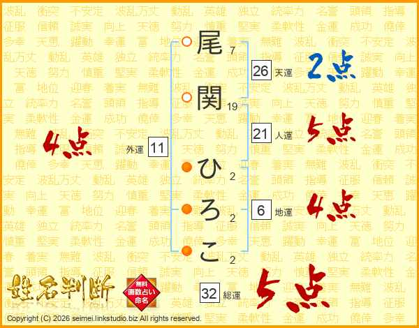 尾関ひろこさんの天運は26画の2点!