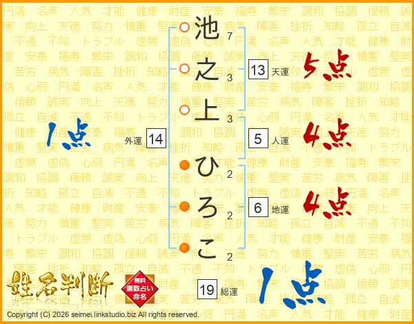 池之上ひろこさんの天運は13画の5点!