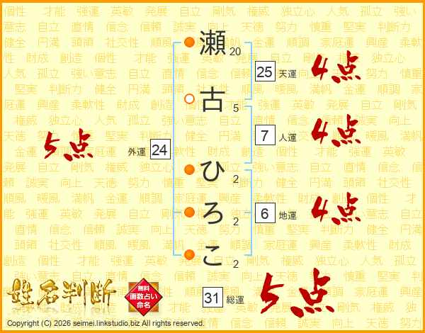瀬古ひろこさんの総運は31画の5点!