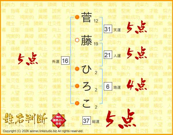 菅(12画)藤(19画) ひ(2画)ろ(2画)こ(2画)