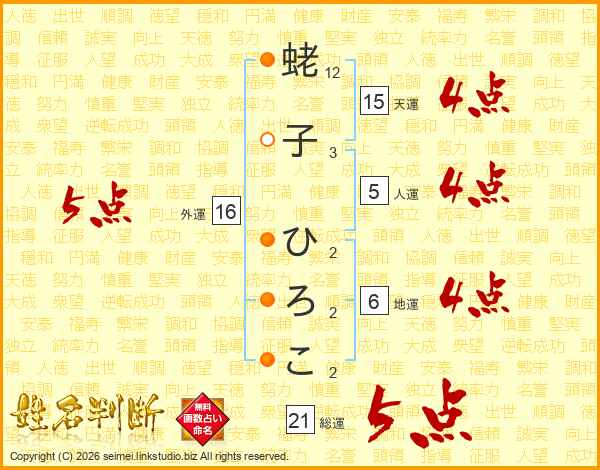 蛯(12画)子(3画) ひ(2画)ろ(2画)こ(2画)