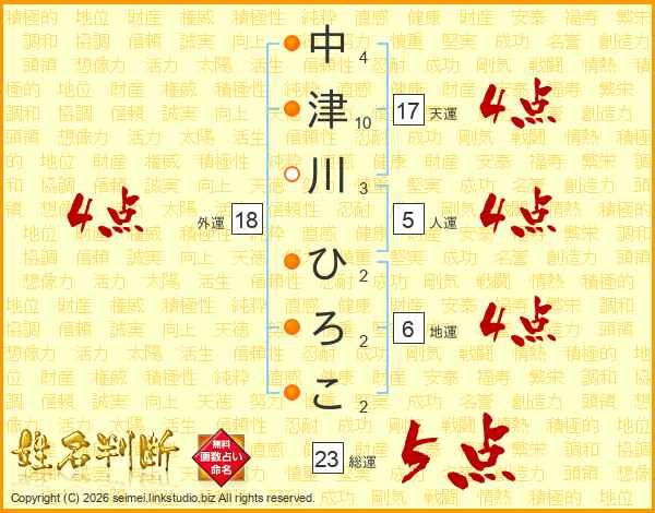 中津川ひろこさんの外運は18画の4点!