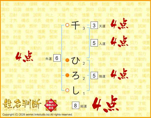 千ひろしさんの総運は8画の4点!