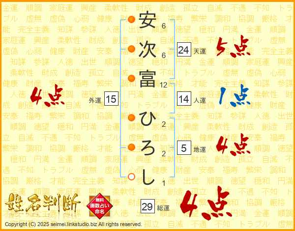 安次富ひろしさんの総運は29画の4点!