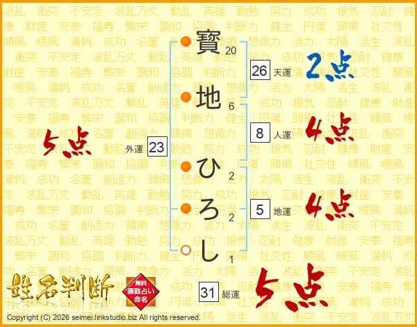 寳地ひろしさんの天運は26画の2点!