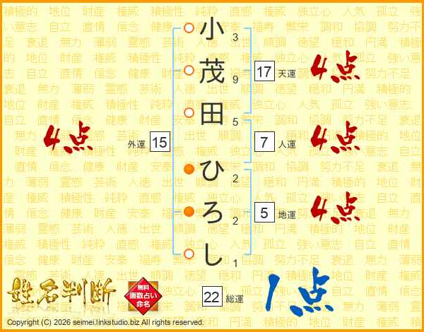 小(3画)茂(9画)田(5画) ひ(2画)ろ(2画)し(1画)
