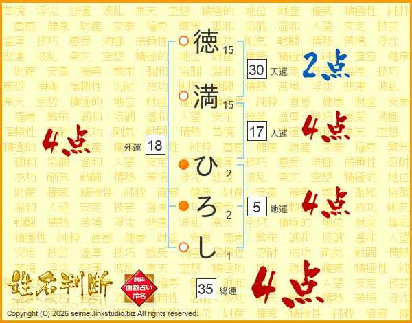 徳満ひろしさんの外運は18画の4点!