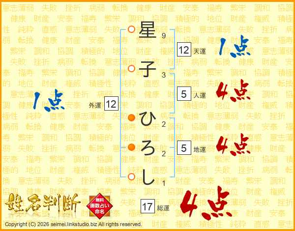 星子ひろしさんの総運は17画の4点!