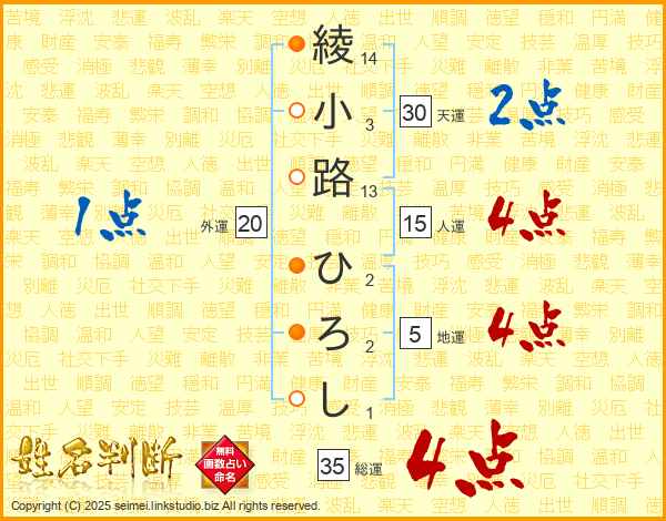 綾小路ひろしさんの総運は35画の4点!