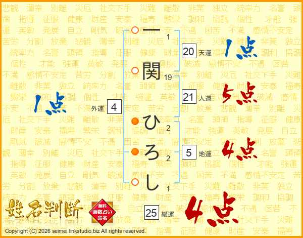 一関ひろしさんの総運は25画の4点!