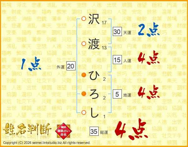 沢渡ひろしさんの総運は35画の4点!