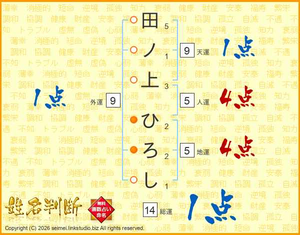 田ノ上ひろしさんの総運は14画の1点!