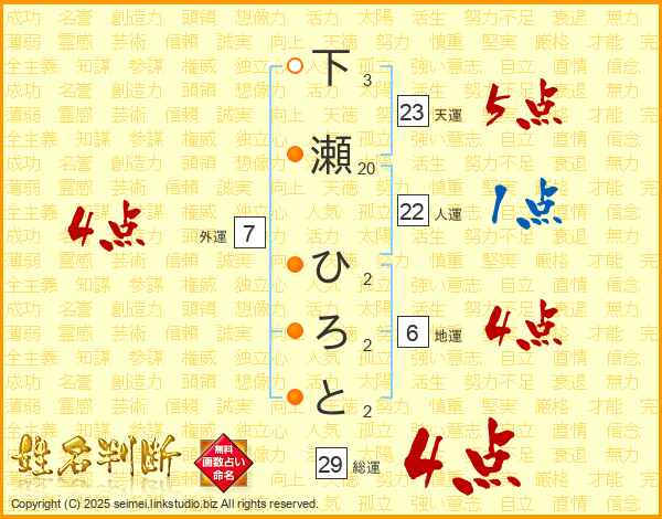 下(3画)瀬(20画) ひ(2画)ろ(2画)と(2画)