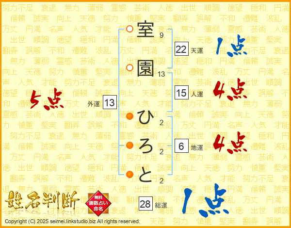 室園ひろとさんの天運は22画の1点!
