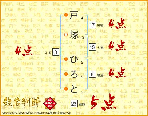 戸塚ひろとさんの総運は23画の5点!