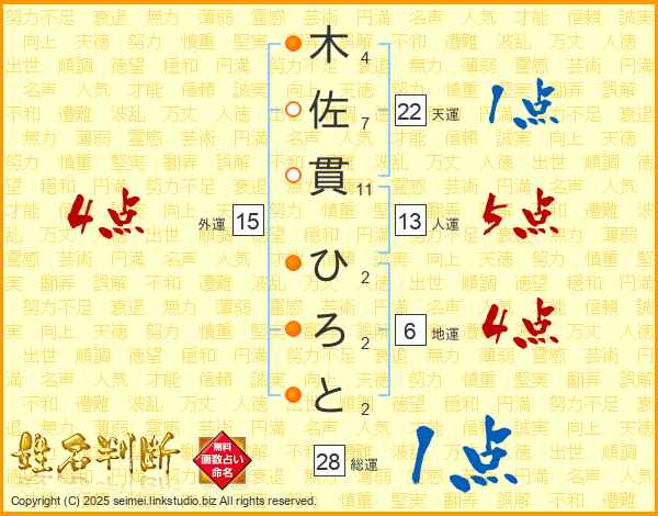 木(4画)佐(7画)貫(11画) ひ(2画)ろ(2画)と(2画)