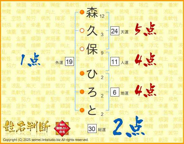森(12画)久(3画)保(9画) ひ(2画)ろ(2画)と(2画)