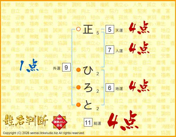 正ひろとさんの総運は11画の4点!