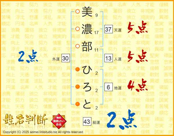 美濃部ひろとさんの総運は43画の2点!