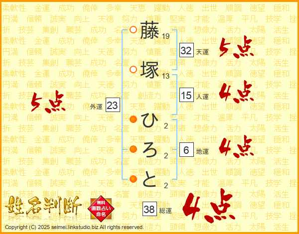 藤(19画)塚(13画) ひ(2画)ろ(2画)と(2画)