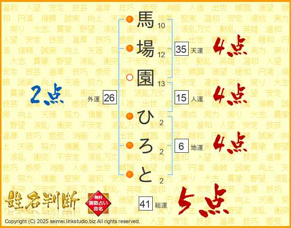 馬(10画)場(12画)園(13画) ひ(2画)ろ(2画)と(2画)