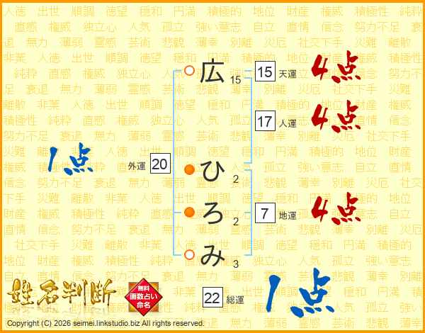 広ひろみさんの総運は22画の1点!