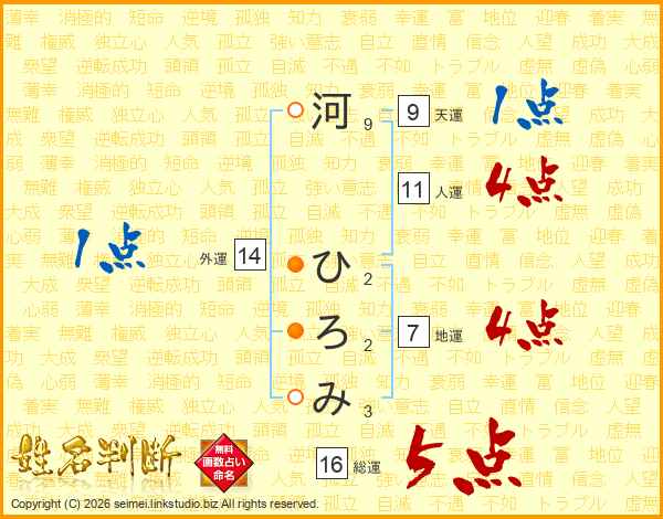 河ひろみさんの総運は16画の5点!