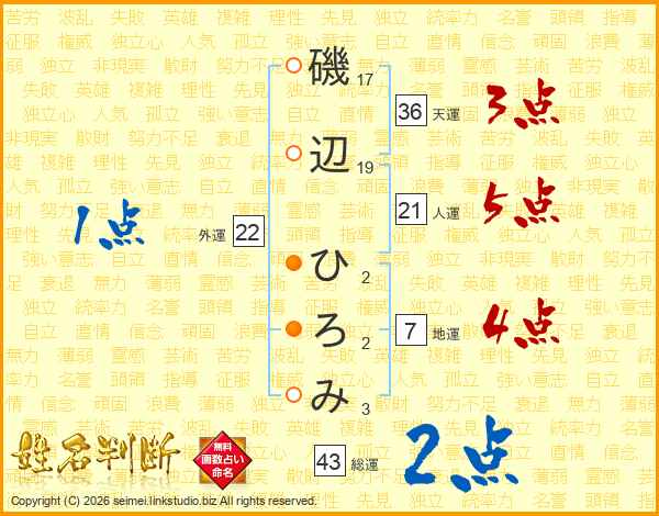 磯辺ひろみさんの総運は43画の2点!