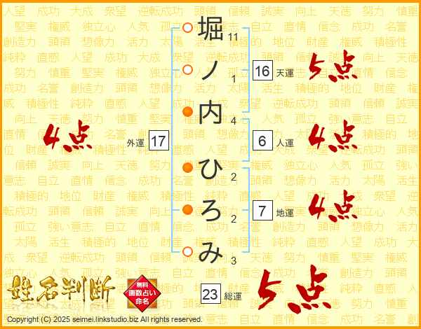 堀(11画)ノ(1画)内(4画) ひ(2画)ろ(2画)み(3画)