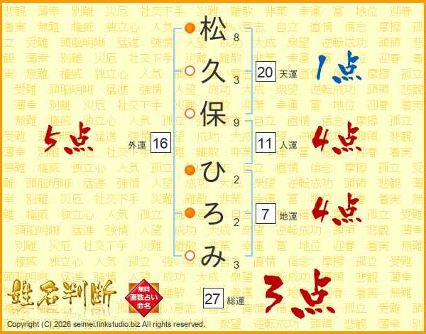 松久保ひろみさんの総運は27画の3点!