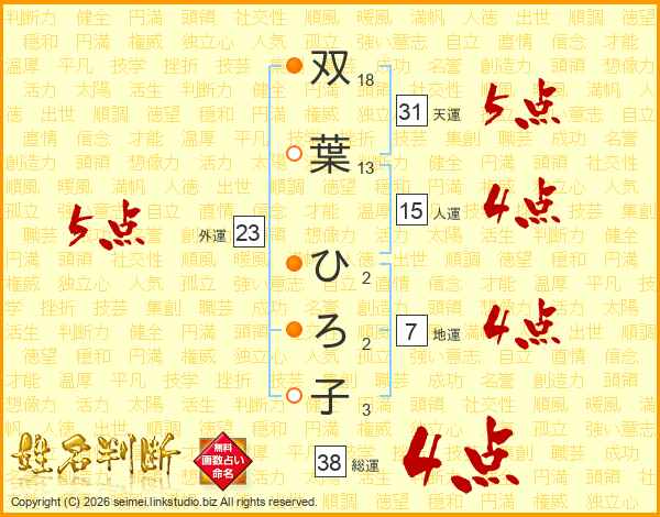 双葉ひろ子さんの総運は38画の4点!