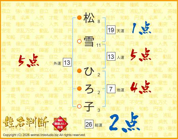 松(8画)雪(11画) ひ(2画)ろ(2画)子(3画)