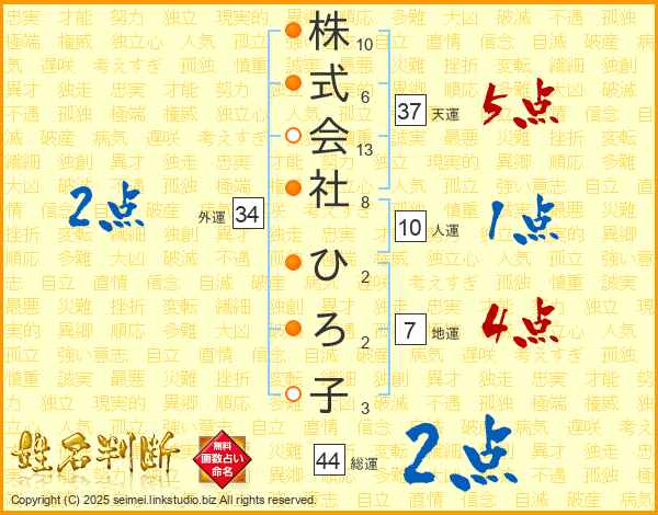 株(10画)式(6画)会(13画)社(8画) ひ(2画)ろ(2画)子(3画)