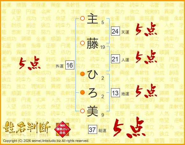 主藤ひろ美さんの総運は37画の5点!