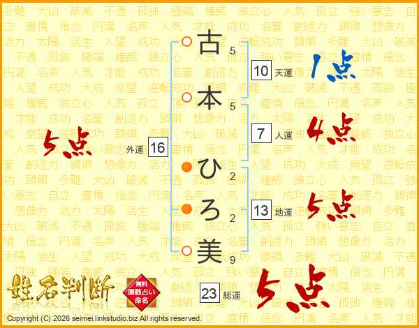 古本ひろ美さんの総運は23画の5点!